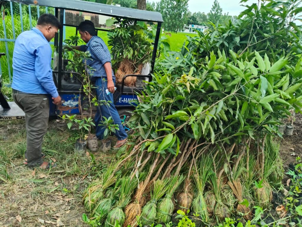 इसी क्रम में दिनांक 29 अगस्त 2025 को तीन लाभार्थी परिवारों को 400 फलदार पौधे – जिनमें नाशपाती, अमरुद, आम, लीची, कागजी नींबू, पपीता, अनार, चीकू एवं कटहल शामिल हैं – वितरित किए गए। इस पहल का उद्देश्य स्थानीय समुदाय को व्यावसायिक रूप से सक्षम बनाना और उनकी आर्थिक स्थिति में सुधार लाना है।