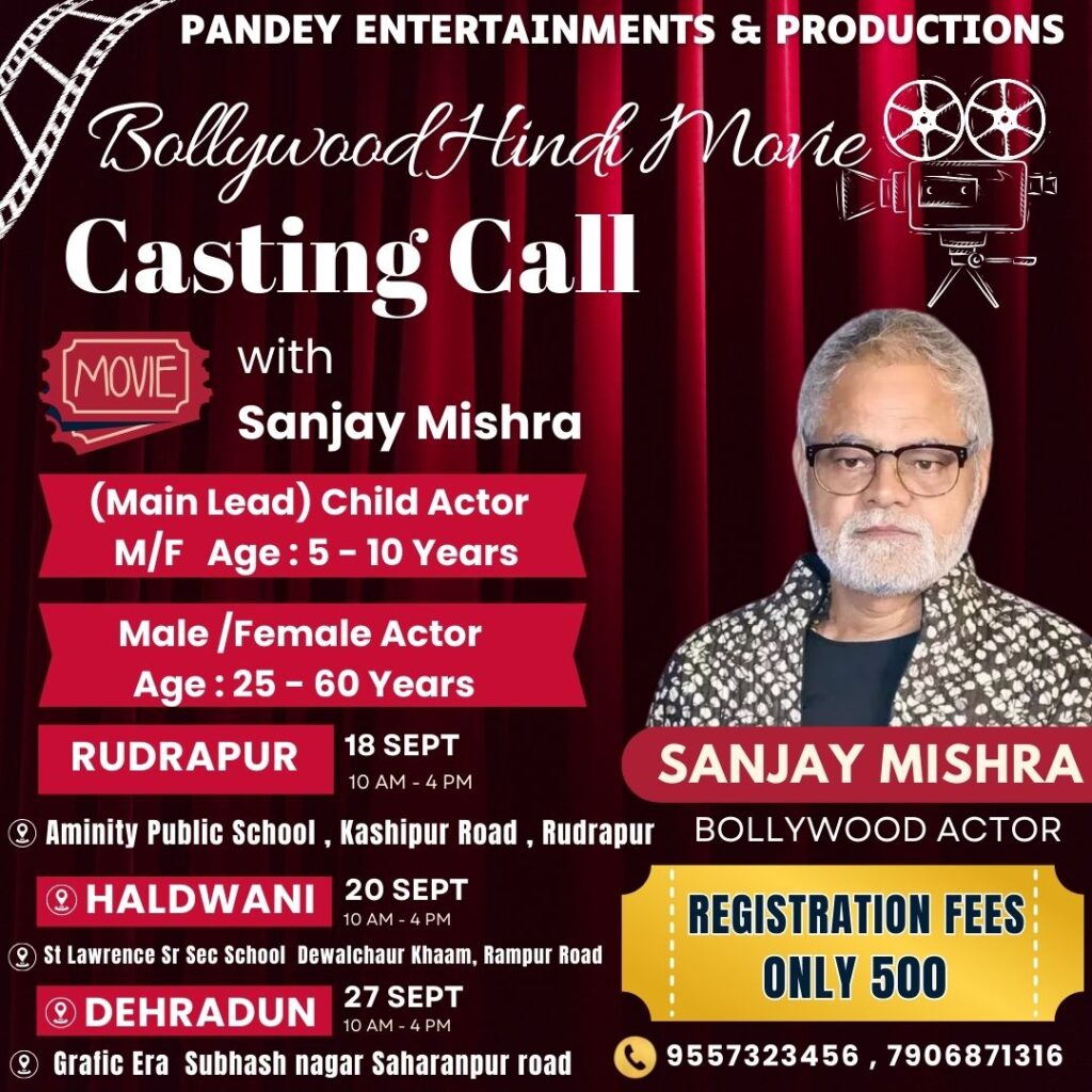 कलाकारों के चयन के लिए ऑडिशन की घोषणा की गई है। रुद्रपुर में 18 सितंबर, हल्द्वानी में 20 सितंबर और देहरादून में 27 सितंबर को सुबह 10 बजे से शाम 4 बजे तक ऑडिशन होंगे। बच्चों और वयस्क कलाकारों दोनों की अभिनय क्षमता, संवाद कला और भावनात्मक अभिव्यक्ति का मूल्यांकन किया जाएगा। छोटे बच्चों के रोल ने स्थानीय अभिभावकों और कलाकारों में खासा उत्साह बढ़ा दिया है।