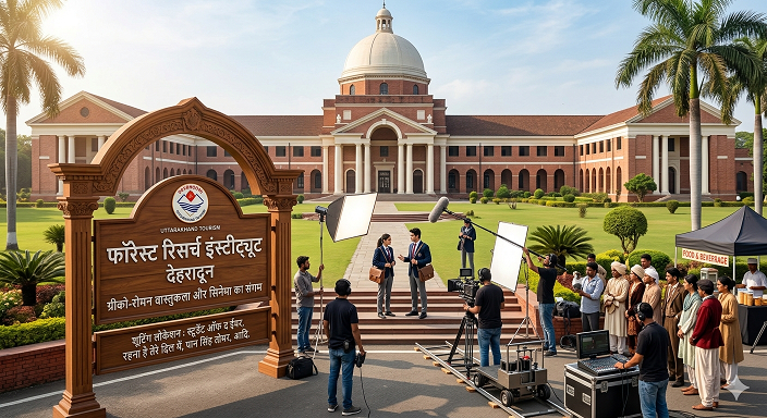 एफआरआई की खूबसूरती ने हमेशा से फिल्म निर्देशकों को अपनी ओर आकर्षित किया है। यहाँ की लंबी सीढ़ियां, बगीचे और गलियारे कई ब्लॉकबस्टर फिल्मों का हिस्सा रहे हैं: