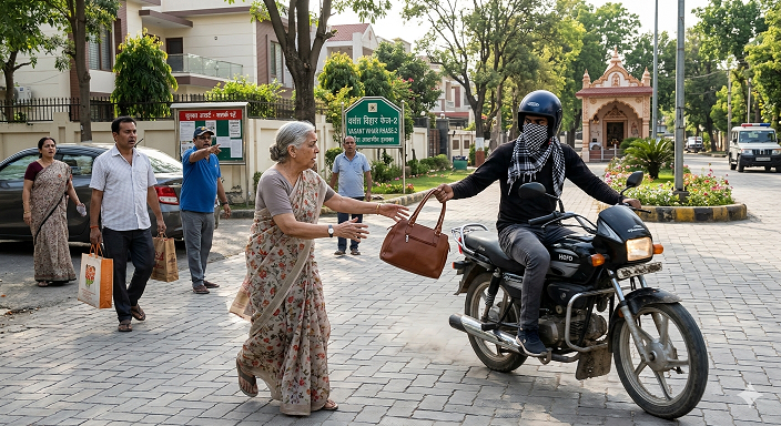 झपट्टा मारकर लूट: बदमाश ने बुजुर्ग महिला के हाथ से बैग छीना और तेजी से फरार हो गया। बैग में एक महंगा सैमसंग गैलेक्सी S-25 अल्ट्रा मोबाइल और कुछ नकदी मौजूद थी।
